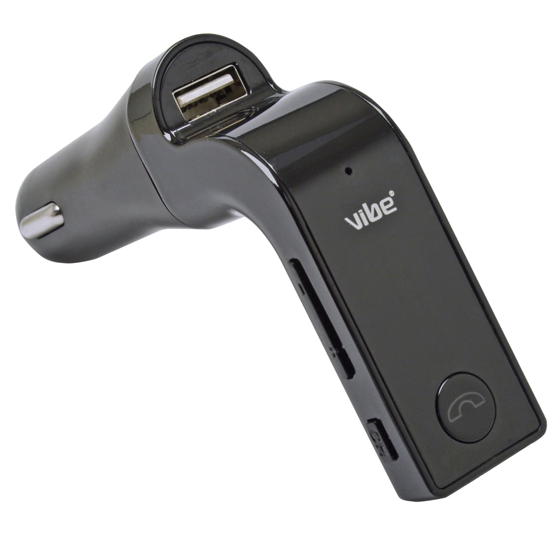 Vibe Bluetooth FM Transmitter is your go to in car music solution. Easily connect any of your Bluetooth devices and start listening to your music on the go!