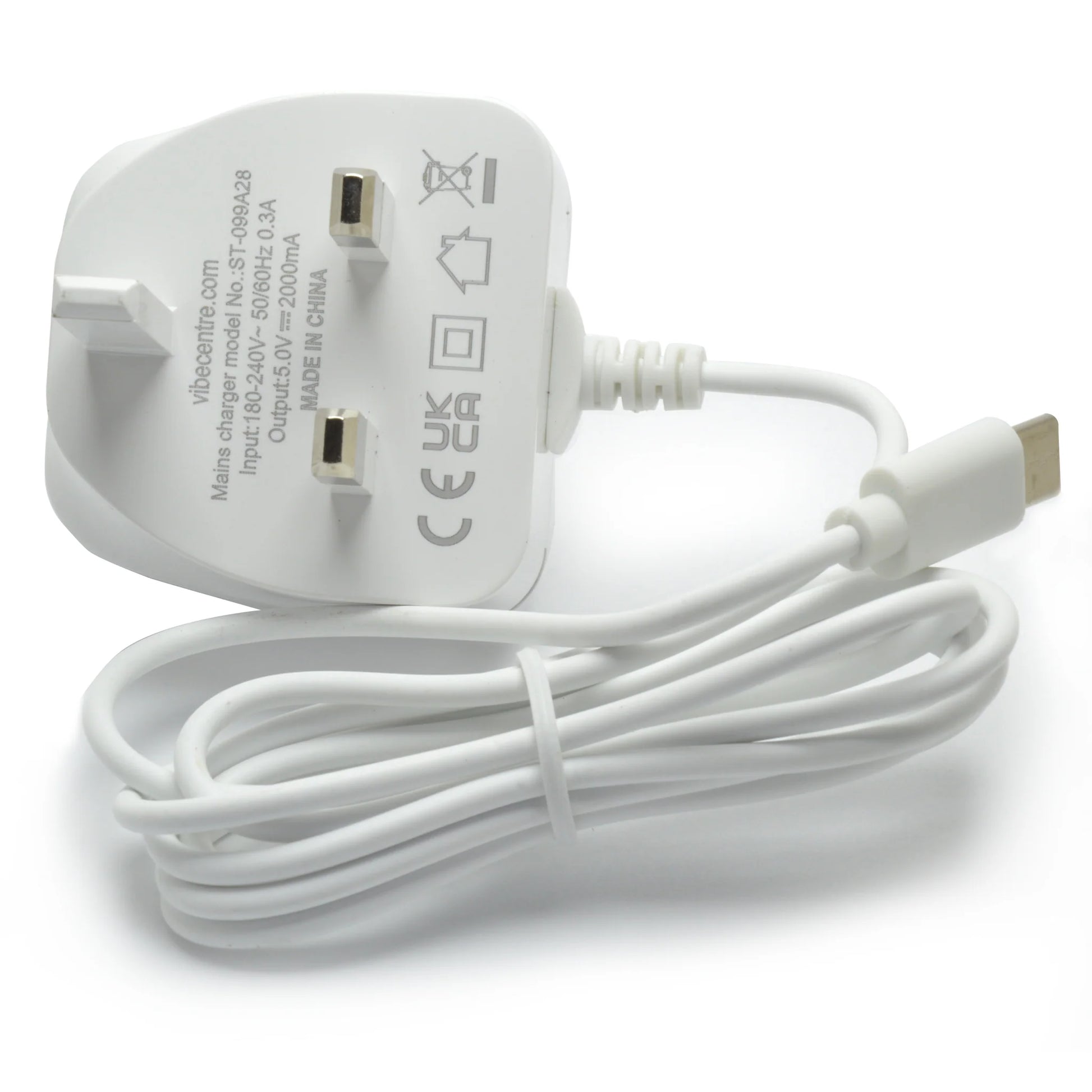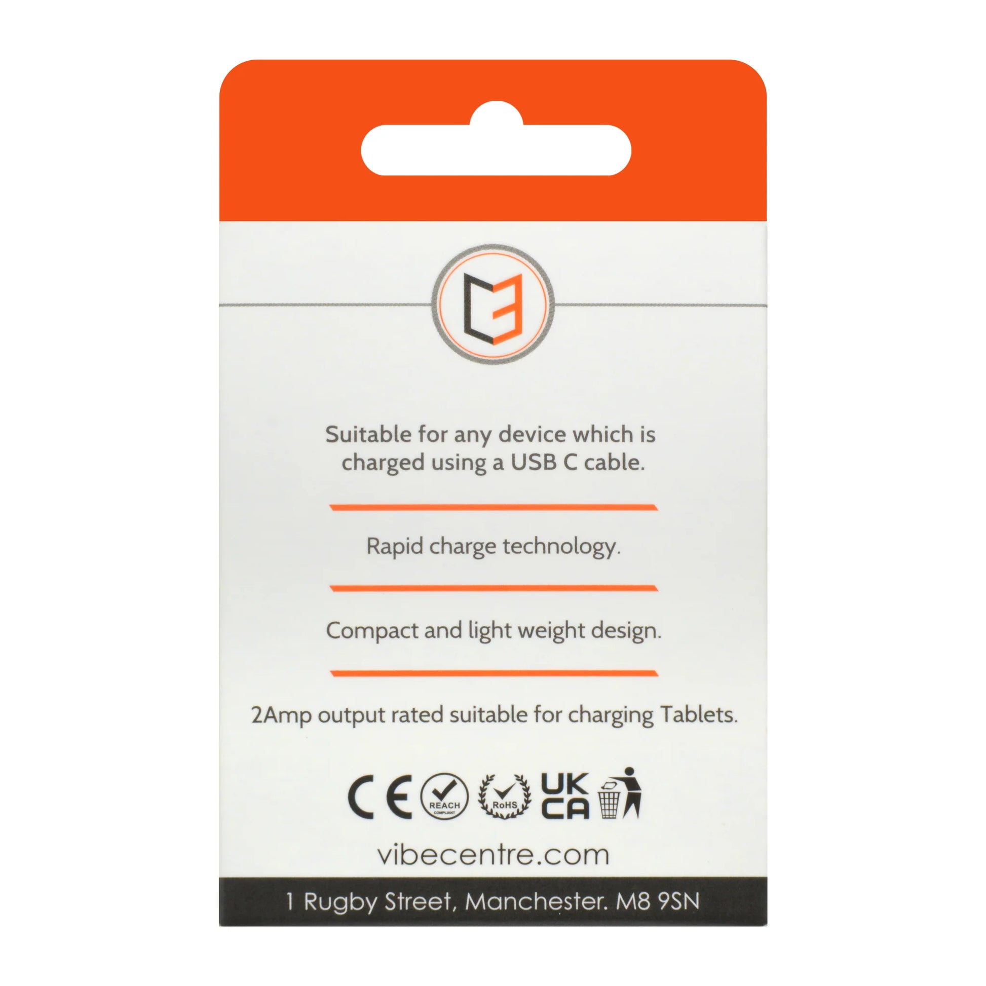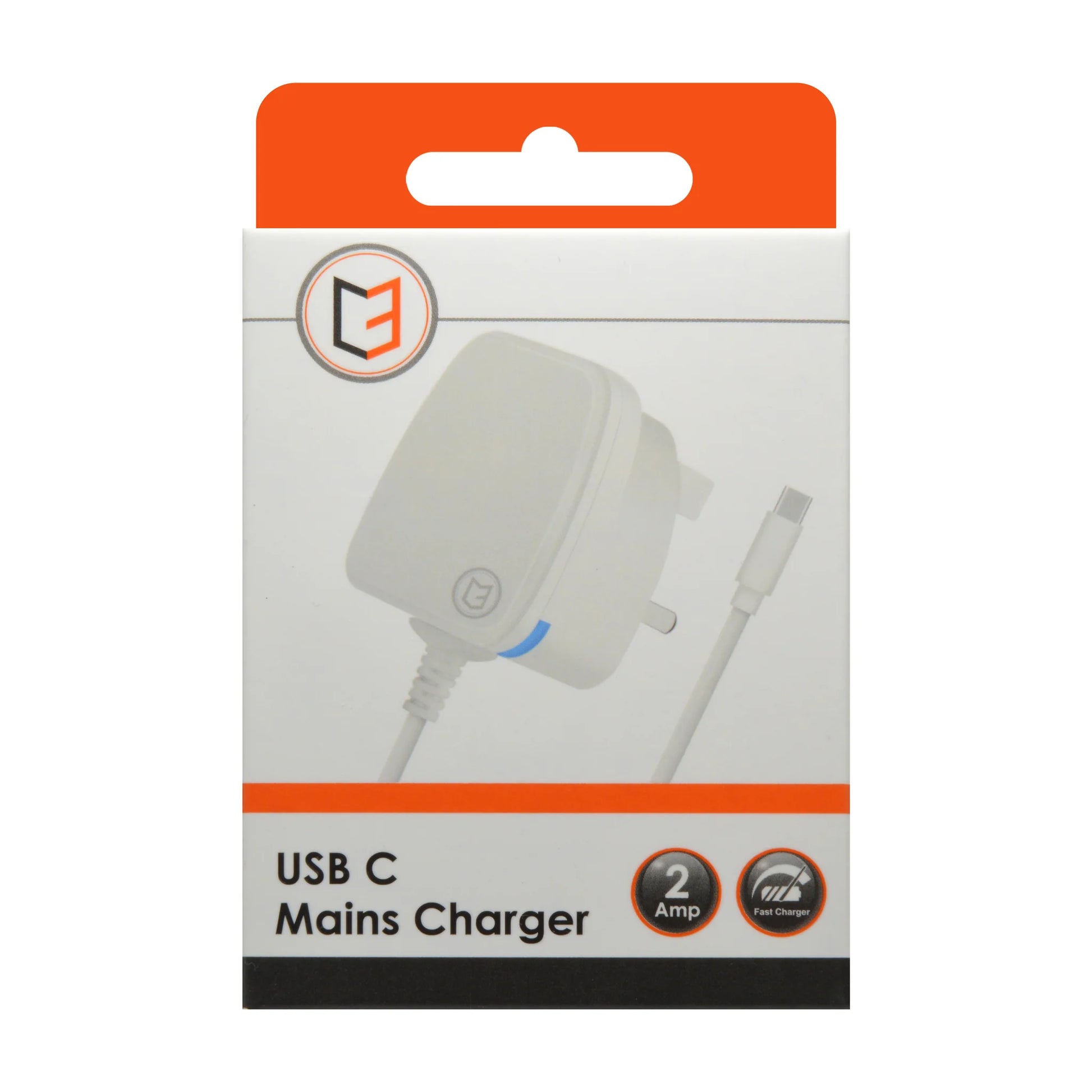 White 2 Amp Type-C USB mains charger by C3, charge any Type-C USB compatible device quickly and conveniently with this 2 AMP high power output mains charger.